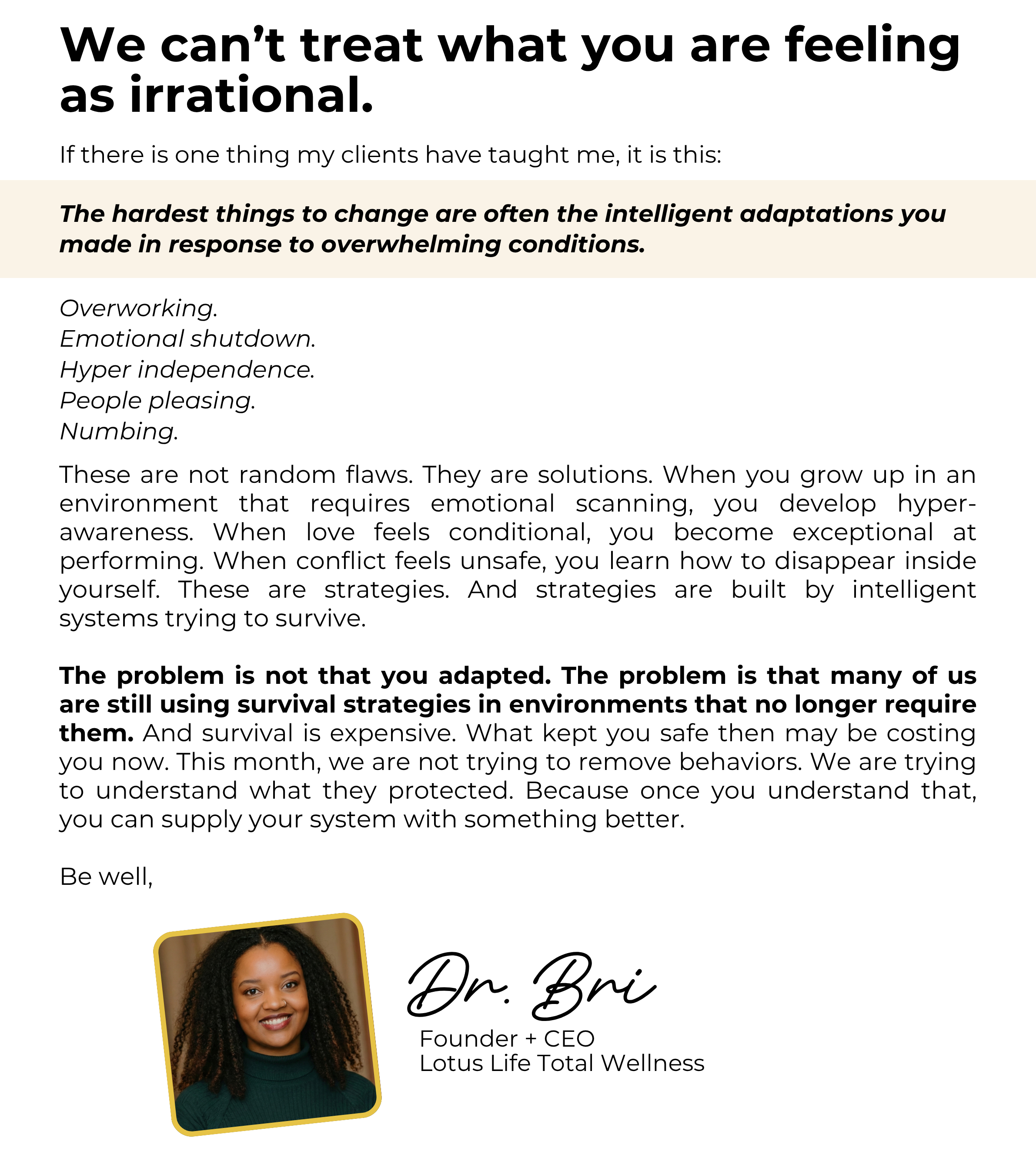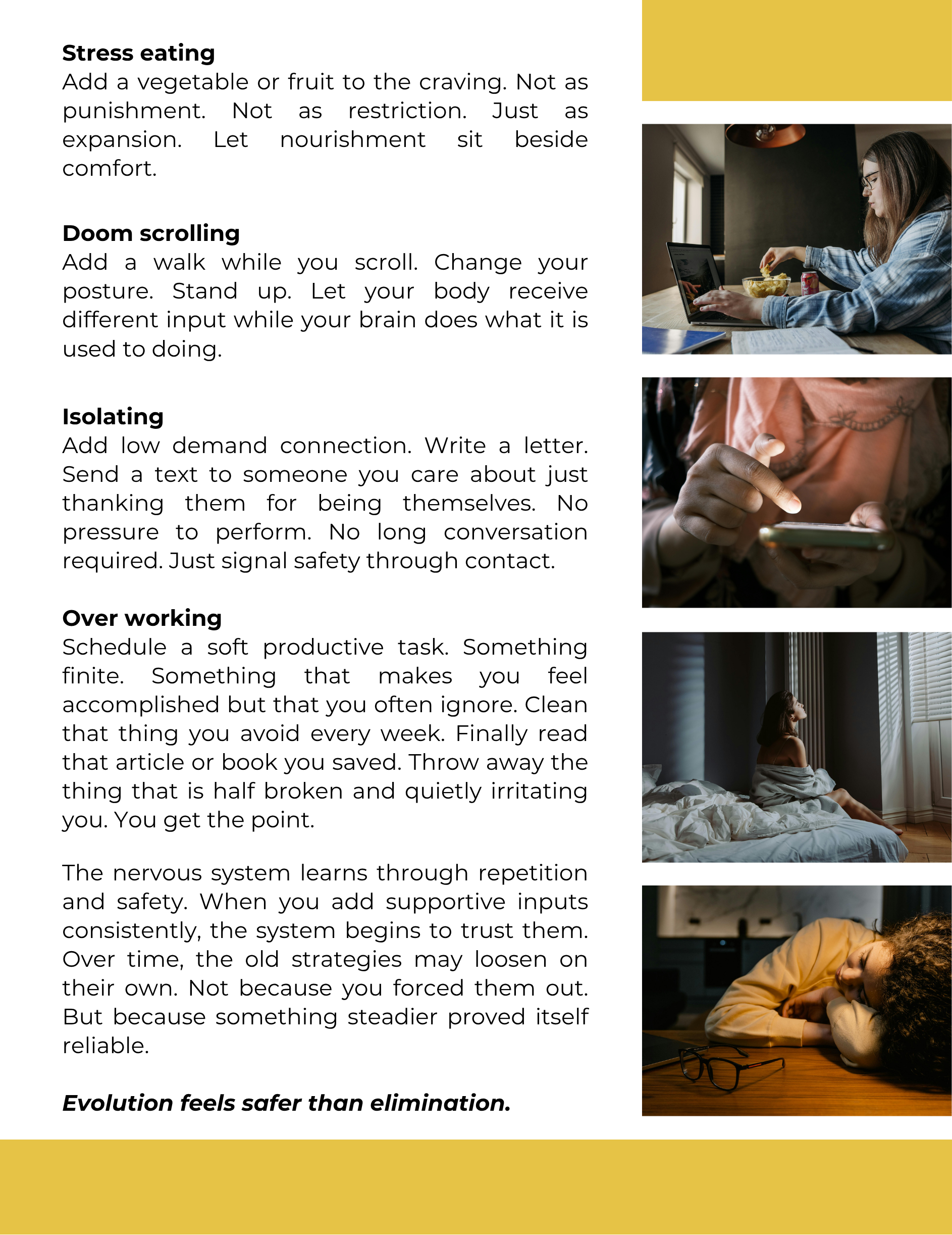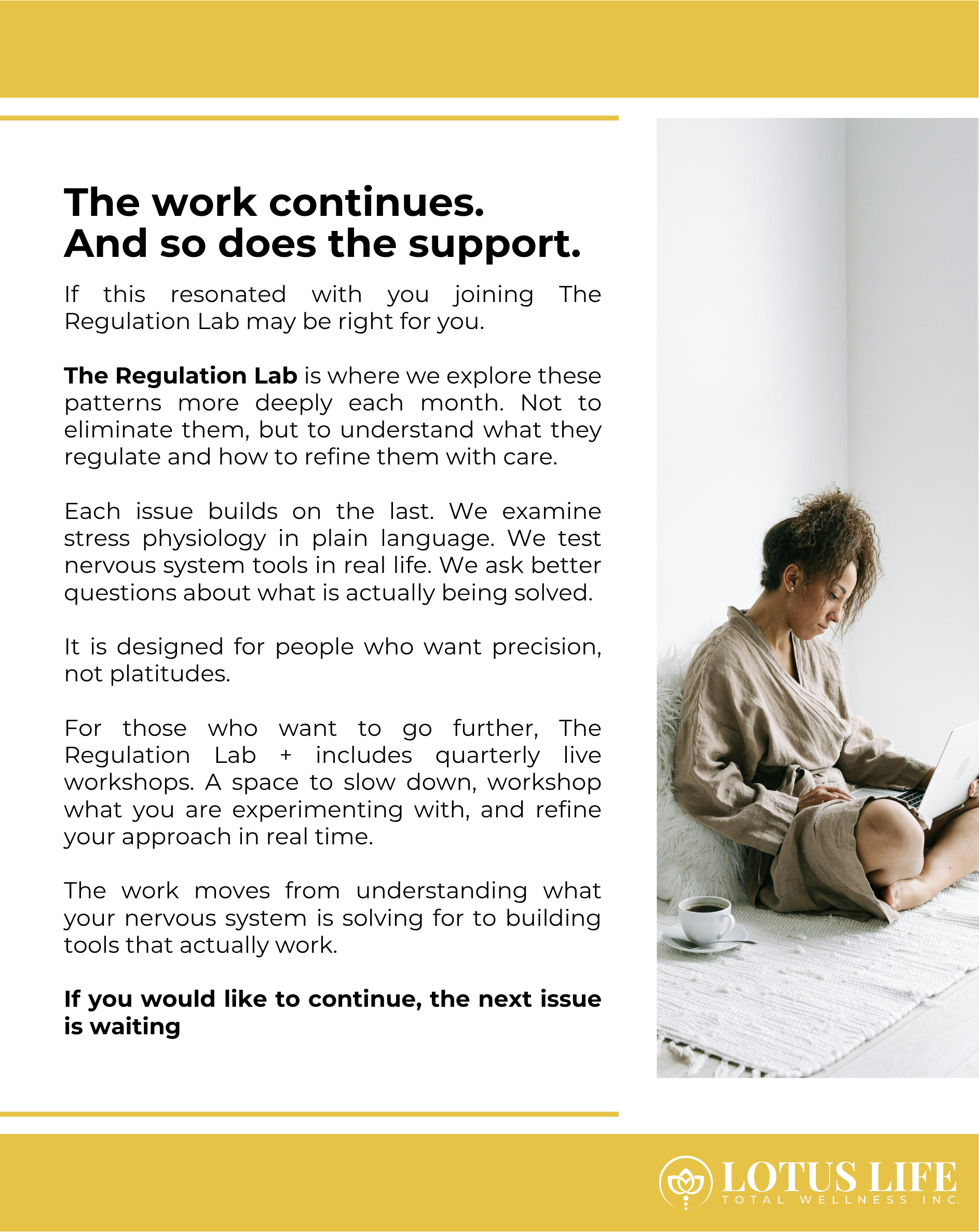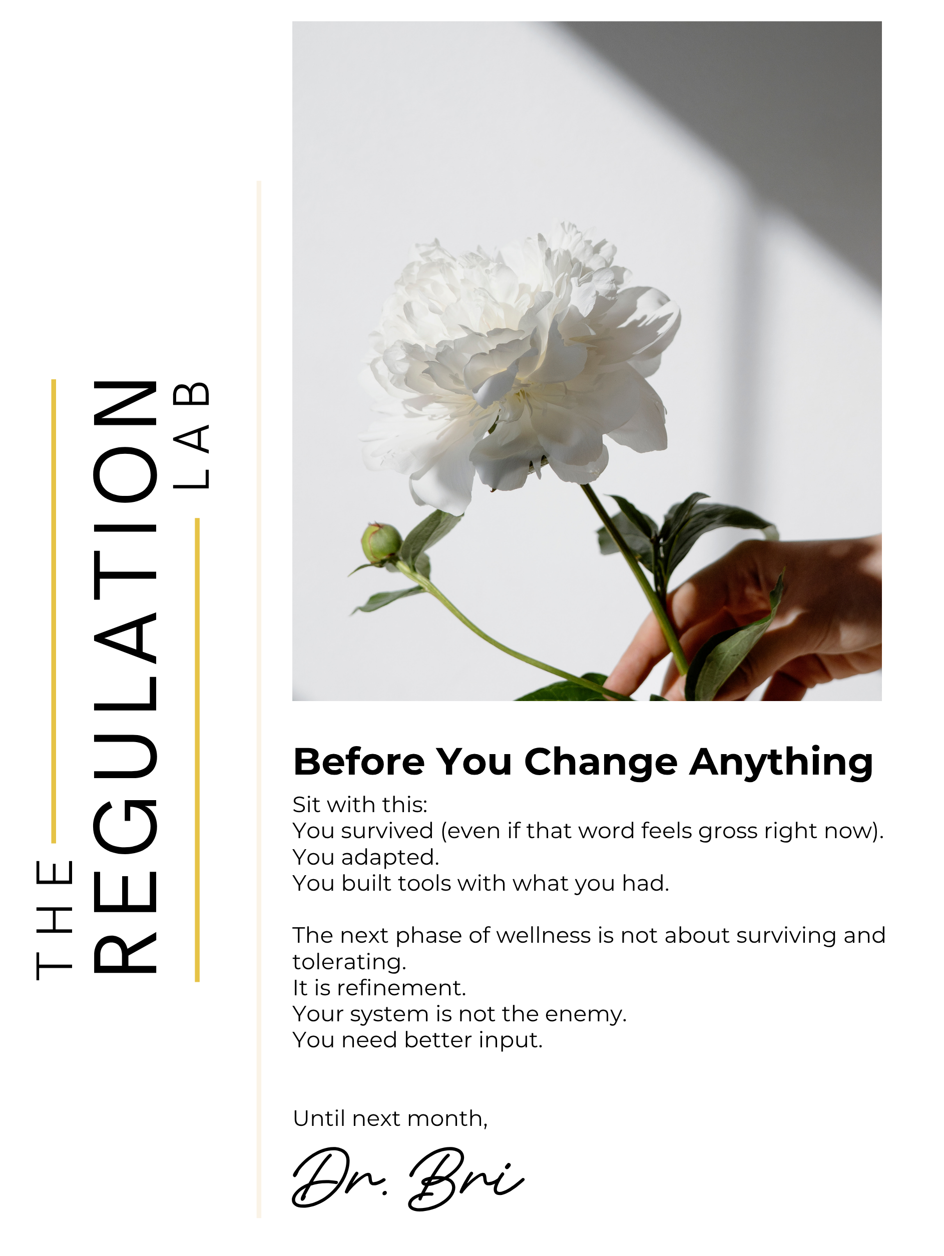 You have tried the lists. You know what to do. The problem is not information, it is capacity. The Regulation Lab is a publication and membership built around understanding how your nervous system actually works so you can sustain the Big Work ahead.